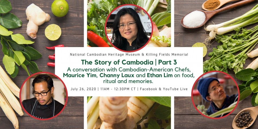 We’re excited for you to join this online conversation with acclaimed Cambodian-American chefs (Maurice Yim, Channy Laux – Chef and Ethan Lim) and board members (Saray Pen Cubacub, Roni Washington and Randy Kim) as they discuss the role of food in their personal and career journeys.