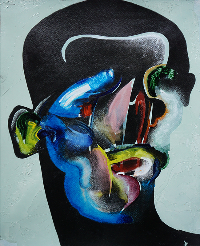 Leasho Johnson (b. 1984) is a visual artist working in paintings, collage, sculpture, street art, and digital medium. He was born in Montego-Bay but raised in Sheffield, a small town on the outskirts of Negril, Jamaica. Johnson uses his experience growing up black, queer, and male to explore concepts around forming identity and the postcolonial condition. Johnson is inspired by Jamaican Dancehall street culture, psychological interiorities, gender politics, Caribbean mythology, and trauma. He uses cartooning as a mode of abstraction to blur the distinction of stereotype and representation, geography and memory, and to reveal or hide western contentions with the black body.