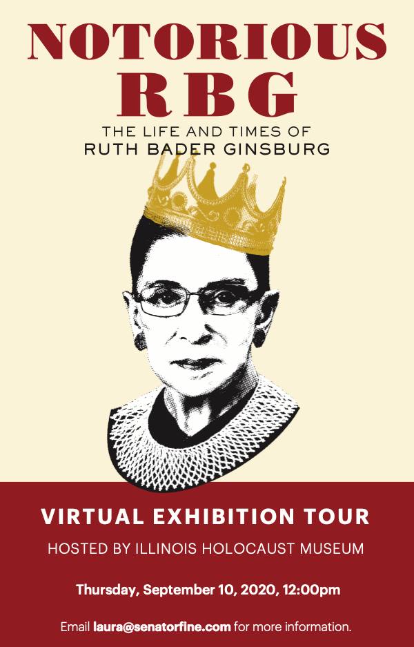State Senator Laura Fine is hosting a virtual “Lunch & Learn” group tour of the Illinois Holocaust Museum & Education Center’s latest exhibition, Notorious RBG: The Life and Times of Ruth Bader Ginsburg.
