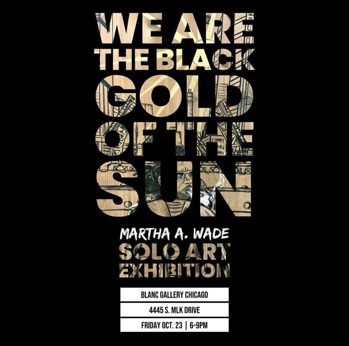 Chicago based award winning artist, Martha Wade, remixes her own work and explores the richness of black people, the current times, and a hopeful future, in a new solo exhibition, “we are the black gold of the sun,” opening Friday October 23 at Blanc Gallery in Bronzeville.