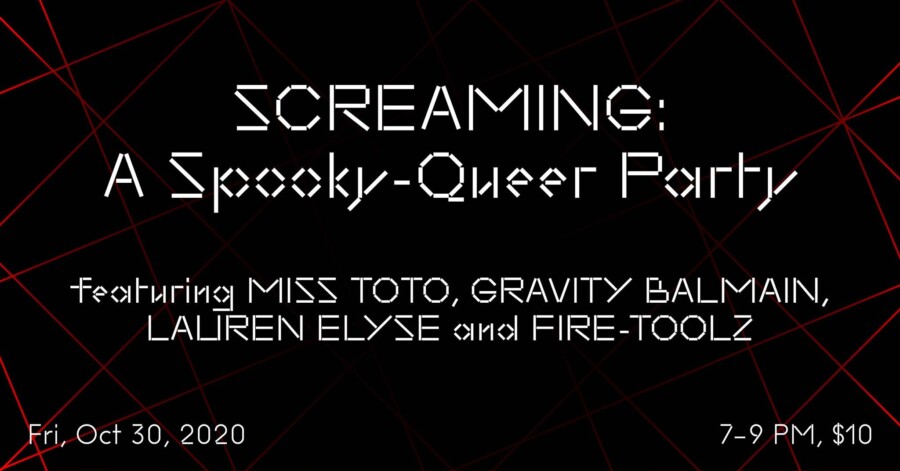 Enjoy a spooky-queer party without leaving your home! SCREAMING is an interactive Halloween experience, hosted by Miss Toto.