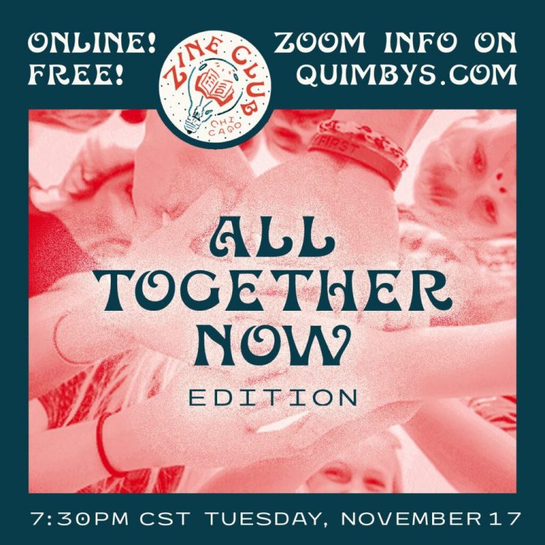 ** Zoom info ** We want to make sure that our online Zine Club events are a safe space, so we won’t be releasing the Zoom link and password publicly. If you’d like to attend, please email zineclubchicago@gmail.com to RSVP by 5:30pm CT Tuesday, Nov 17th. You’ll receive an e-mail from Zine Club Chicago with the Zoom link and password one hour before the event begins.
