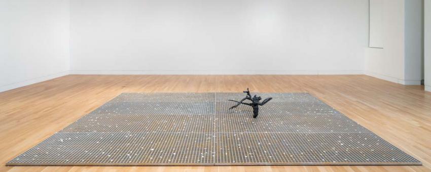 Mendez’s exhibition at the Logan Center Gallery, The years now, presents a suite of new sculptures and premieres a new sound installation featuring a found recording in which a speaker contemplates a crisis of identity. Moving around the gallery and emanating from various objects, the peripatetic voice is anchored by a central fiberglass grid scattered with white carnation petals, which are continuously replenished throughout the run of the exhibition. Also included in the presentation is a 3D-printed object—modeled after a pre-Columbian pot from the Field Museum in Chicago. Collected from the Moche Valley in Peru, objects such as this served both a decorative and commemorative function, often accompanying a body into the afterlife. Here, Mendez uses contemporary imaging technology to reimagine the artifact, animating it with sound.