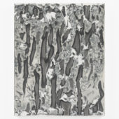 Finally, a set of sculptures, referred to as Pales, made of plaster-coated gelatin silver prints, have been stood on end atop tables positioned as a divide through the gallery space. They have the appearance of being made as a result of an interruption in the processes described above. In these works, there is a delicate balance between material relationships as the form of the curled prints act as armatures for the plaster that has assisted these photographs in their attempt to stand upright. These works are presented in a range of forms–some left open exposing the front and back of the print in the round while others are closed and filled to the brim with material–reminding that images are always operating as vessels engaged in some degree of disclosure and concealment.