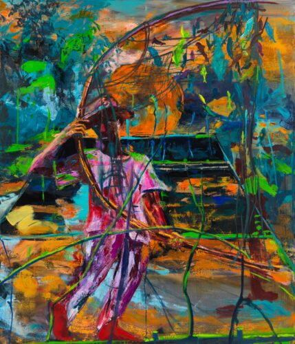 Divesting from the confines of a linear narrative, Palileo seeks to resurrect and memorialize the legacy of invisible histories, creating a reflective space to consider the potentials achieved when we invest in our ancestral inheritances. Through gestural layers Palileo collapses time and space, visually dissolving the borders between past and present, offering the emblematic ability to stand alongside her elders within one endless picture plane.