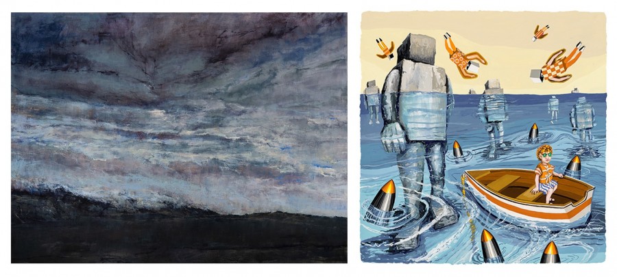 Is This Real? is a 2-person exhibition featuring landscape and figurative paintings and drawings by Ellen Holtzblatt and imaginative, surreal gouache paintings and sculptures by Kathy Weaver.