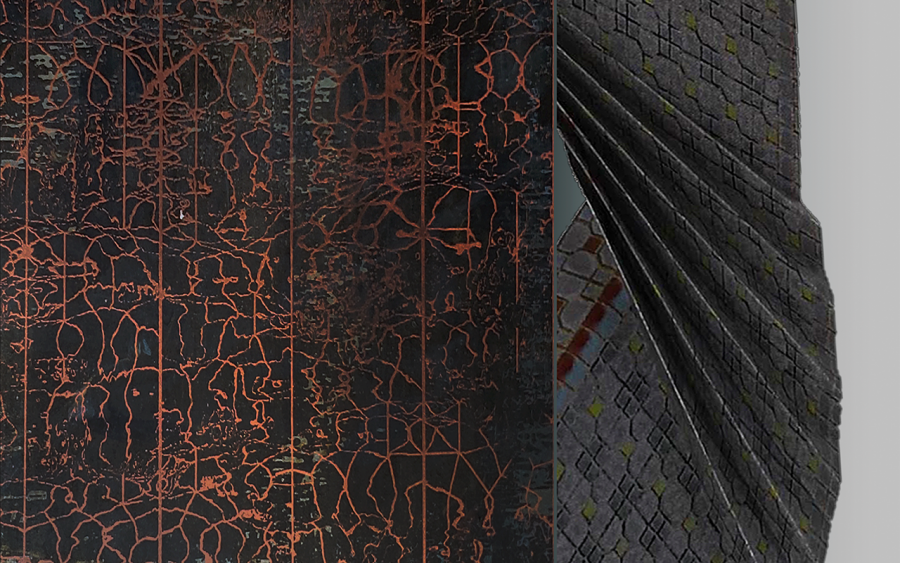 (Left) Farnaz Khosh-Sirat, Leyl (detail), screenprint on steel, 2021