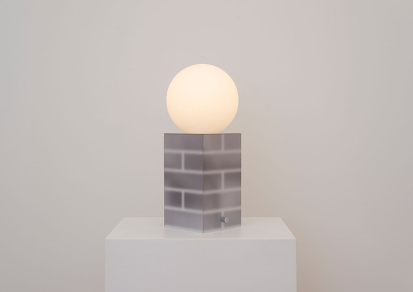 Like bricks, the pieces in the series—a table lamp, a bench, a coffee table, a wall cabinet, a credenza, and a corner light, in addition to a curtain and a decorative brick—conflate utility and excess. The furniture is practical, without fuss; proportions are all determined by the same singular module, and each piece serves a distinct purpose. But the one-to-one-scale graphic treatments of their unique, furniture-grade laminate surfaces blur reality and representation in an exuberant, cinematic way. The series plays with depth and weight, evading easy readings but easily prompting new associations. Secret drawers and sound effects add to their unexpected behaviors.