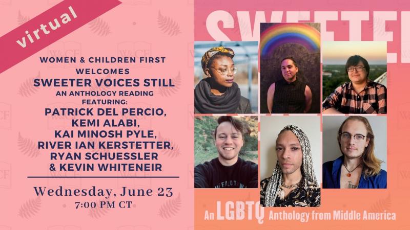 Join us for a virtual reading and discussion celebrating Sweeter Voices Still: An LGBTQ Anthology from Middle America. This virtual event will feature readings from Patrick Del Percio, Kemi Alabi, Kai Minosh Pyle, and River Ian Kerstetter. The readers will be joined in conversation by editors Ryan Schuessler and Kevin Whiteneir.