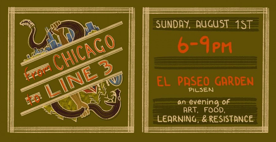 Chicago Against Line 3 invites you to an evening of cultural performance and sharing about the Indigenous-led resistance against the rerouting of Enbridge’s Line 3 tar sands oil pipeline through natural rivers and wild rice lakes on Anishinaabe treaty territory. Stop Line 3 to respect Indigenous treaty rights and the Ojibwe way of life- and to stop the fossil fuel death machine!