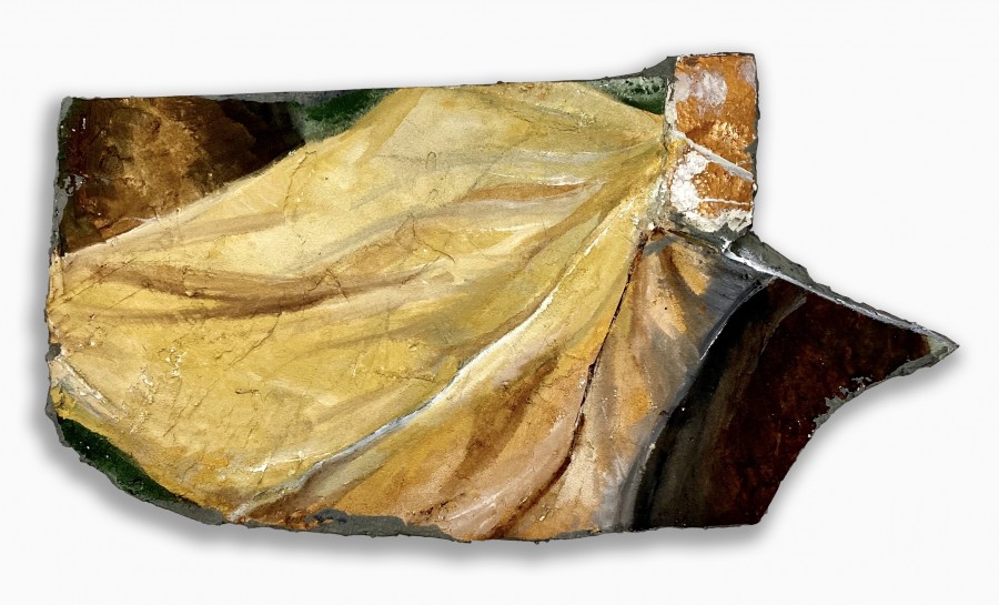 These references are not connected through any traditional art historical category but re-emerge in themes and imagery which are instead connected through the singular body and are housed together in Wisti Grayson’s experience and mind. Wisti Grayson draws on her deep and emotional memory to bring together this fragmented collection of work. During the many months of isolation and pandemic, Nancy traveled to different times and places that exist in the painterly aspects, the stories conveyed, or the evocation of specific emotions that she is deeply familiar with, finds as a place of comfort, recognition and home. The memory is a slippery vehicle, as the objects are incomplete, veiled, transformed and transferred into a relic of contemporary contemplation that eludes and alludes to Wisti Grayson’s magical practice.
