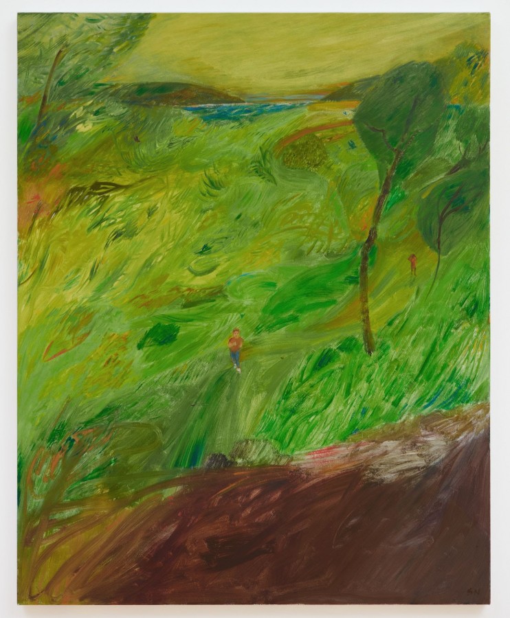 Soumya Netrabile’s vibrant, charged paintings are part of the long history of landscape painting, but they also embody a very contemporary relationship to their subject and firmly exist in our time. She composes and places her human and animal figures alike with sovereignty and an equality of existence. They are often enveloped in their environs, hidden by the formal marks of her paint. For the artist, the ubiquitous landscape remains the primary figure, the preeminent protagonist. There is an ever present notion that Mother Nature is not our possession, but we hers. Netrabile’s paintings capture the irreducible hum (to borrow the title of one of the exhibition’s paintings) of the world, and for her, we should be fundamentally grateful to be in it.