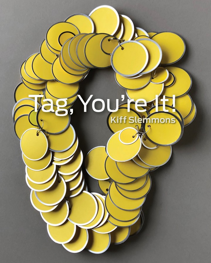 Don’t miss the reception for the group exhibition “Tag, You’re It!”, curated and fabricated by Epiphany’s Resident Artist, Kiff Slemmons, this Saturday, November 20 at 6 p.m.! The exhibition, which opened for viewing in Studio 4 on November 6, features the work of 34 artists and jewelers whom Slemmons invited to adorn standard key tags with their own unique artistic expressions. Readymade key tags ordinarily serve as a utilitarian means of identification, but here they are transformed into spectacular jewelry.