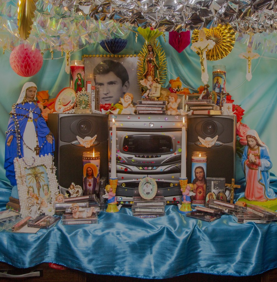 Marylu E. Herrera articulates complex aesthetic (and by extension, ethical) dimensions of hybrid cultural vantage points. Following on years of work that mine the histories of traditional Mexican culture and its export into American immigrant experiences, Herrera’s most recent project has been based in her efforts to reconstruct and index a life’s work of her paternal grandfather Antonio, who left behind dozens of mixed tape cassettes he recorded from radio music, spoken interludes, prayers, and incidental reflections of his everyday life. In a blend of installation sculpture and photography, Herrera has recreated portions of her grandfather’s elaborately ornamental home environment, which serves as a point of departure for self consciously cross-cultural fantasy. Approaching, analyzing, and deconstructing Antonio’s audio collages has mapped more than just the familial relationships in which these materials occur: this is a provocation that asks who is authorized to build which histories, and how are those legacies made to matter as they come to be processed by a body politic.