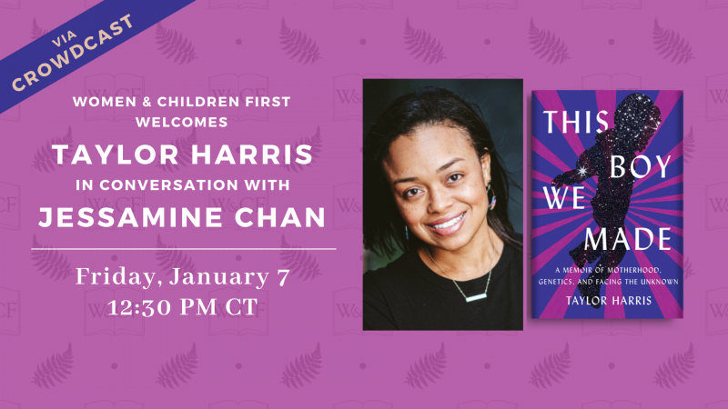 Join us for a virtual conversation on Women & Children First’s Crowdcast Channel celebrating the release of This Boy We Made: A Memoir of Motherhood, Genetics, and Facing the Unknown by Taylor Harris. For this event, Harris will be in conversation with Jessamine Chan.
