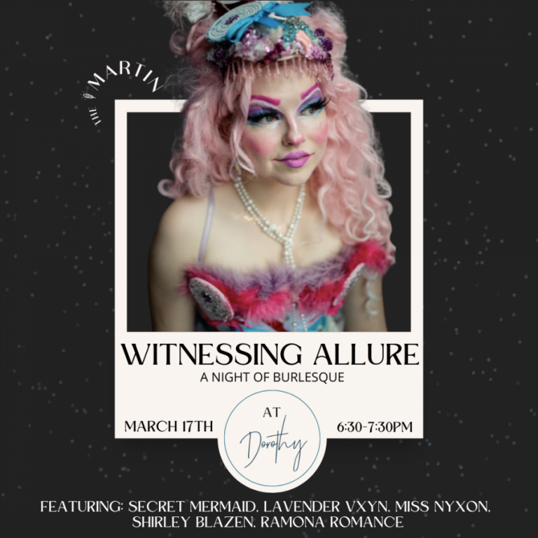 In celebration of Chicago photographer Erica McKeehen’s solo exhibition AUTHORING ALLURE on display at The Martin from March 4th – March 20th, Witnessing Allure is a one night only performance event bringing together burlesque performers from McKeehen’s portraits and community.