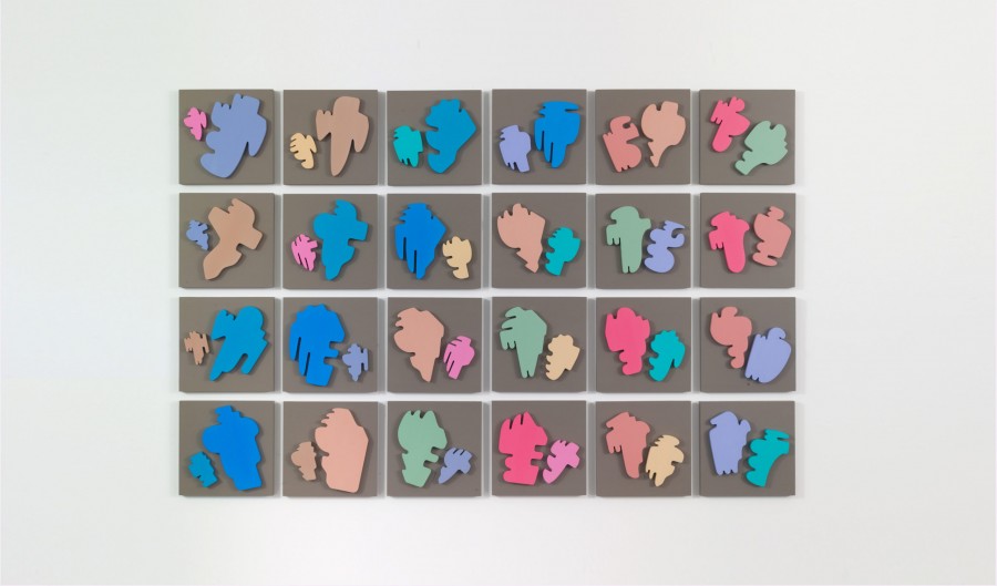 Allan McCollum’s two installations are conceptualizations that use reproduction and seriality. The Shapes Project, which he began in 2005, uses a basic computer graphic program that results in 31 billion unique, albeit highly nuanced, shapes. The second work, The Writer’s Daughter, emerged from a two-year-old child’s attempts to imitate her parent’s handwriting, which led to the artist’s contemplation of written language and its meanings.