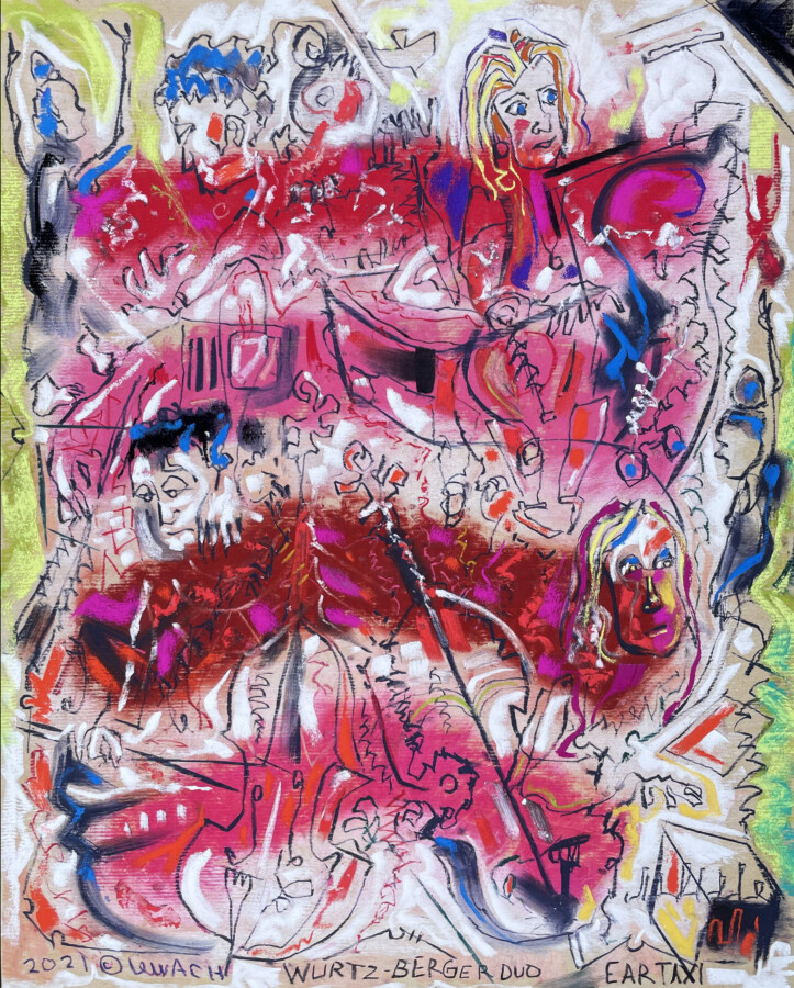 Self-proclaimed absurdist and artist Lewis Achenbach continues to visually improvise and document the music scene as he has done for the last 10 years, capturing the frequency in the room. He offers a rewarding and creative form of adulation and reverence, through the cross-pollination of the sonic arts and visual arts. He shares what he has discovered by working on this discipline through public performances that are both virtual and in-person, a process he has titled a Jazz Occurrence and which he considers an invitation into his artistic process.