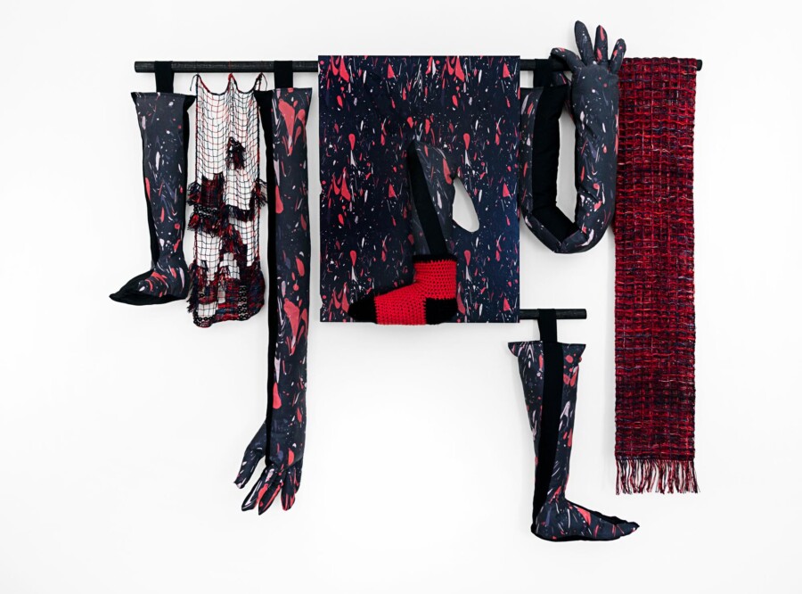 Western Exhibitions is thrilled to present Jade Yumang’s first solo show with the gallery, Open House Spatter. Yumang marries sculptural craft and literary appropriation by working from two 1964 articles on homosexuality and relating them to the gendered site of suburban living in the mid-20th century. Using monochromatic colour schemes and gay spatter patterning, Yumang recreates materials and objects that reference domesticity. Fabric-stuffed hands, arms, legs, and feet swell and curve to interact with textile versions of everyday household objects and attire. In seemingly innocuous sculptures, creeping limbs reach, encircle, and become entangled in the artist’s domestic constructions, separating the idea of queerness form a purely sexual state (as often dramatized and stigmatized in mass media) and instead, asking questions about everyday life in North America. Open House Spatter opens with a free public reception from 5 to 8pm on Friday, November 4 and runs through December 17, 2022. Gallery hours are Tuesday to Saturday, 11am to 6pm.
