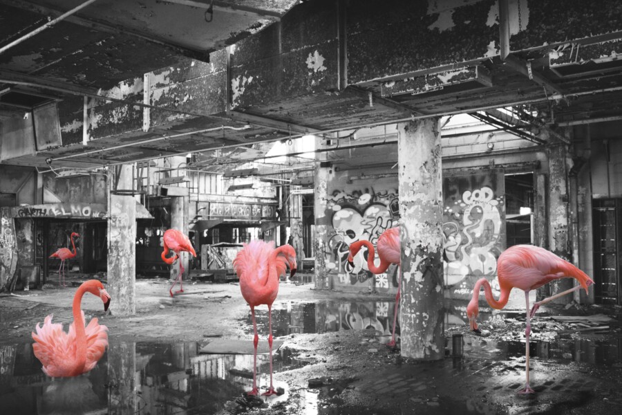 In this series, MoMaz presents us with abandoned spaces from a decadent Detroit, but inhabited by the livelihood of animals, a vital element inside the ruin of our world. In this unusual balance, there is space for everyone. It is a game where the likelihood of the context loses importance, and the possibilities of a new reality become the true focus of the experience.