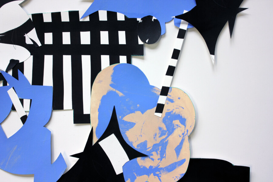 Midnight Mirage is a new body of work by Chicago-based artist Sarah Leuchtner. Utilizing varying interpretations of the grid, and her symbolic vocabulary of imagined and found shapes, Leuchtner embraces the characteristics of urban life and evening work hours as medium. Artificial lighting, cast shadows, high contrast, and varying values of sunset blue become integral elements to the work. For Leuchtner, the dynamics between tactile texture and layers of extreme flatness contrast one another across these paintings, collages and sculptures.