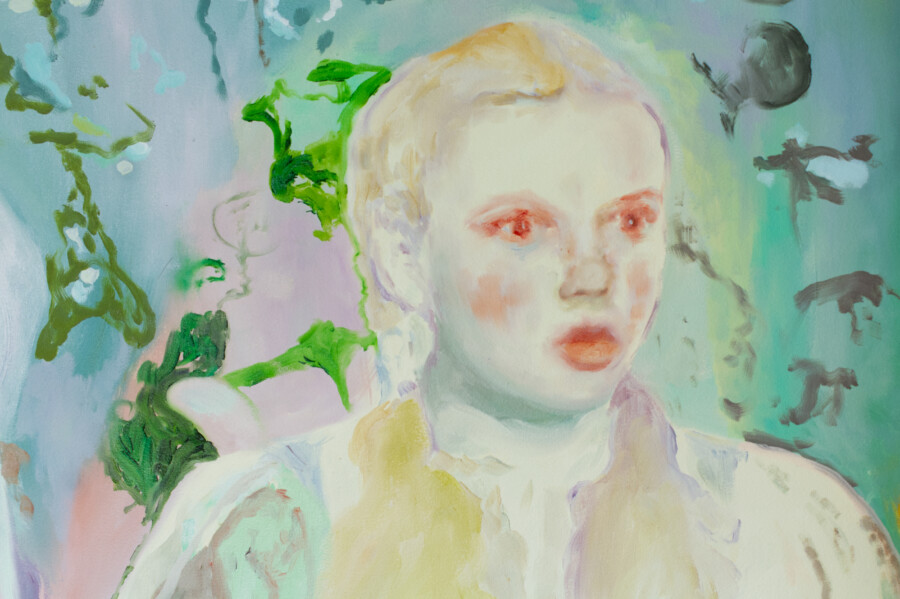 The work responds to oil painting’s history in its distinct palate and sensitive approach. Pastel colors and exuberant brushwork echo the Rococo painter Fragonard, while the atmospheric blurring references contemporary painter Luc Tuymans’ investigation of cultural memory and trauma. Historical references to the medium are also supported by the rise of social media, the heightened presentation of self-identity, and the significance of the ‘selfie’. Ideas of the self, the construction and presentation of identity, and the malleability of this construction operate between the space of the photograph and its transformation into the hand-made image.
