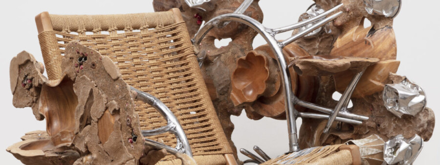 Jessi Reaves combines iconic modernist design with an irreverent aesthetic in sculpture that toys with functionality. Reaves often begins with found furniture, which she dismantles, converts, remakes, enhances, pads, and embellishes in ways that still allow the suggestion of physical contact or use. By breaking things open, she proposes that they be examined visually and in terms of their purpose in life. The exhibition at The Arts Club of Chicago centers on the work Personal Heat, 2021, a deconstructed étagère with accompanying video that explores themes of renovation and rebellion. The sculptural aspect features a pop punk aesthetic of hot pink animal stripes, as if Reaves had been locked in a room in her great aunt’s house with a can of paint, a saw, and some wood glue. The funk and humor of this work and other of Reaves’s sculptures and wall reliefs belie a mastery of complex composition, color, and the ability to integrate disparate materials. Reaves brings to her seemingly off-handed works a range of manual skills that she uses to both humorous and unsettling effect. Jessi Reaves: all possessive lusts dispelled offers a sensuous installation of works that allow the abject to infiltrate the ontology of the object.