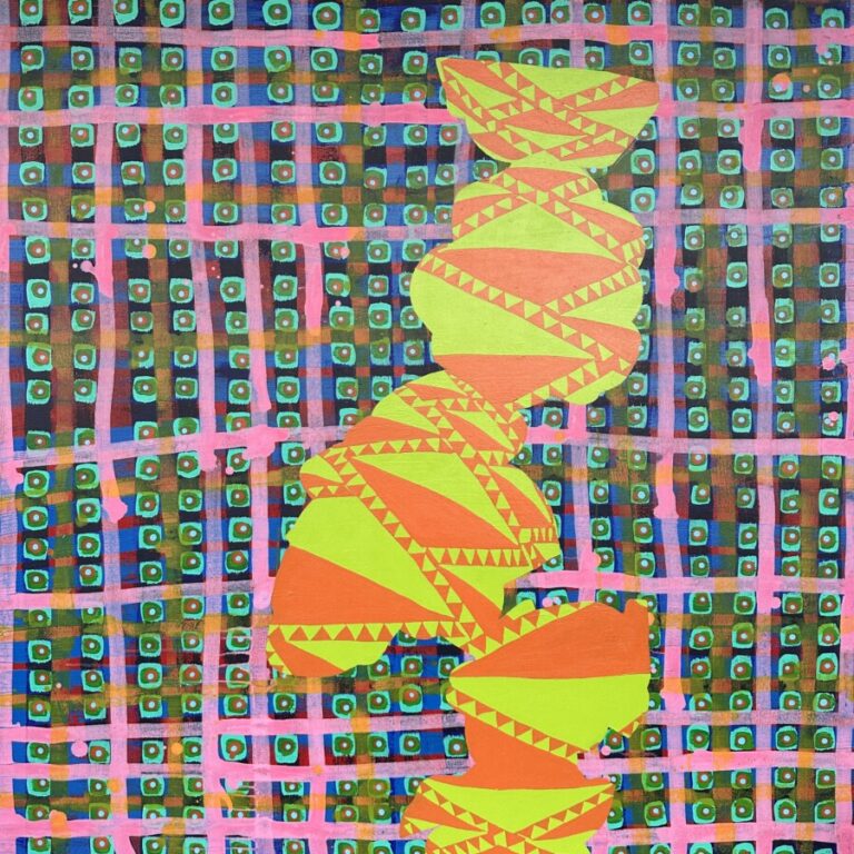 Vibrant colors, bold contrast, and diverse patterns are hallmarks of Raúl Ortiz’s work. His painting practice is heavily influenced by years of printmaking, creating abstract compositions through layering, repeating, and refining images and marks. Born and raised in Mexico, Ortiz moved to Chicago as a child where he still lives and works.