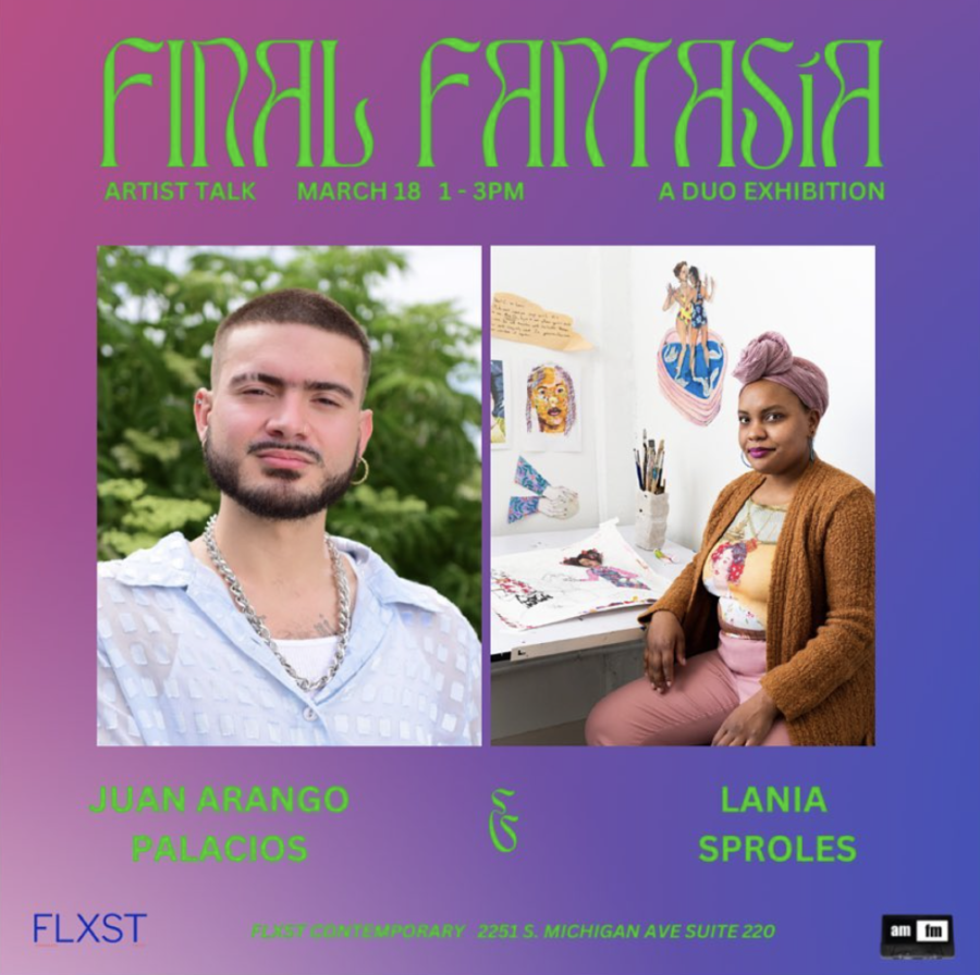 Tags: AMFM Gallery, artist talk, Chicago, Final Fantasía, Juan Arango-Palacios, LaNia Sproles, Near South Side