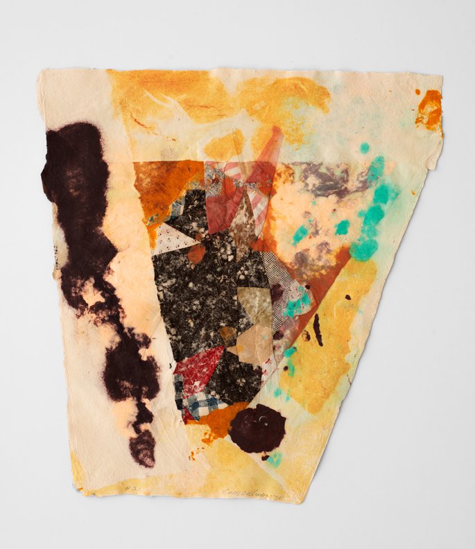 Sam Gilliam, #21, 1975, handmade paper and fabric construction, 16 1/2 x 15 1/2 inches.