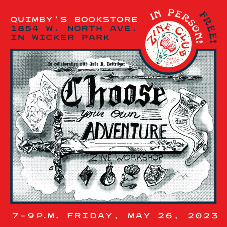Join us for Zine Club Chicago In Person: Choose Your Own Adventure Zine Workshop at 7-9 p.m. Friday, May 26 here at the shop. We’ll have zinemaking supplies and snacks on hand! Masks are strongly encouraged when you’re not noshing.