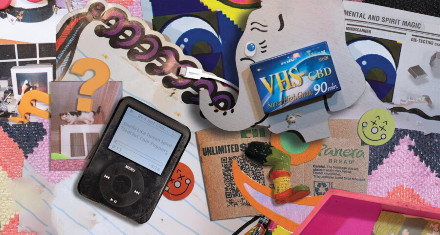 “NO TRUE THOUGHTS”, Jacob Ciocci’s first solo exhibition at Soccer Club Club presents 2 new bodies of work: a hypnotic collection of fast-paced digital video loops known as “The Familiars,” and an assortment of cluttered, digitally manipulated “flat-lay” photographs.