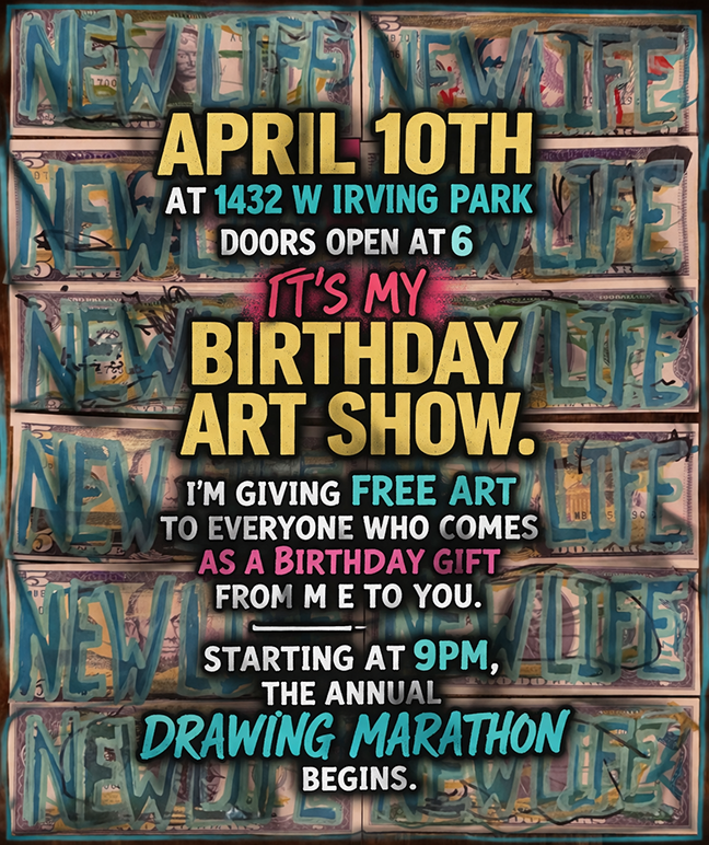 Allen Vandever Birthday Art Show every one gets free art!