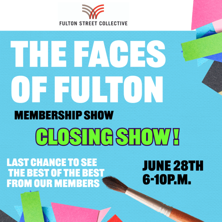 This installation is designed to bring the Fulton Street Collective community together, this salon-style show will showcase the diverse talents within our membership and foster new connections among artists and art lovers alike.