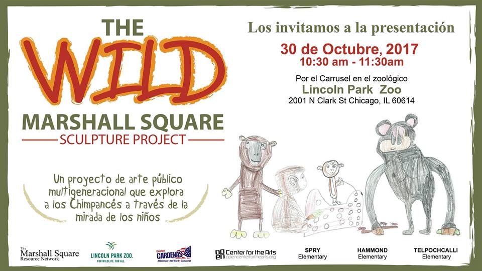These chimpanzees were selected from move than 200 drawings by children from Telpochcalli, Hammond and Spry elementary schools. They were adapted into life-sized sculptures by J. Omar Magaña, an artist and founder of OPEN Center for the Arts located in the Marshall Square Little Village community.