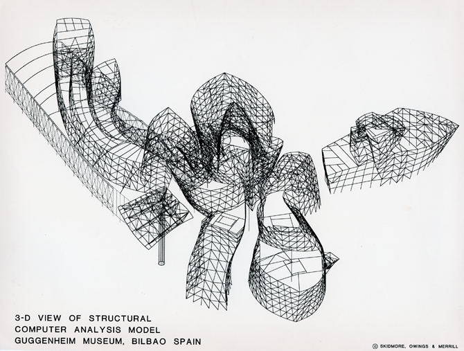 Designed by Frank O. Gehry & Associates, the Guggenheim Museum was a feat of design and construction. The use of digital modeling, including the now famous CATIA, and other innovations opened the door to a new generation of architecture that defined in the beginnings of the twenty-first century. The Chicago office of Skidmore, Owings & Merrill (SOM) served as the structural engineer for the building with Bilbao-based IDOM as the local engineer. It was a unique collaboration that proved to be a major success.