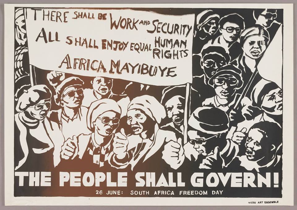 A collective of cultural workers formed in the late 1970s in South Africa and based in Botswana, the Medu Art Ensemble at its height comprised approximately 50 members working across artistic media, all united in their struggle against South Africa’s apartheid policy of racial discrimination. This program is presented in conjunction with the exhibition, “The People Shall Govern! Medu Art Ensemble and the Anti-Apartheid Poster,” which features posters made during the apartheid period that forcefully call for radical change, and reflect the complex social and political realities of that time.