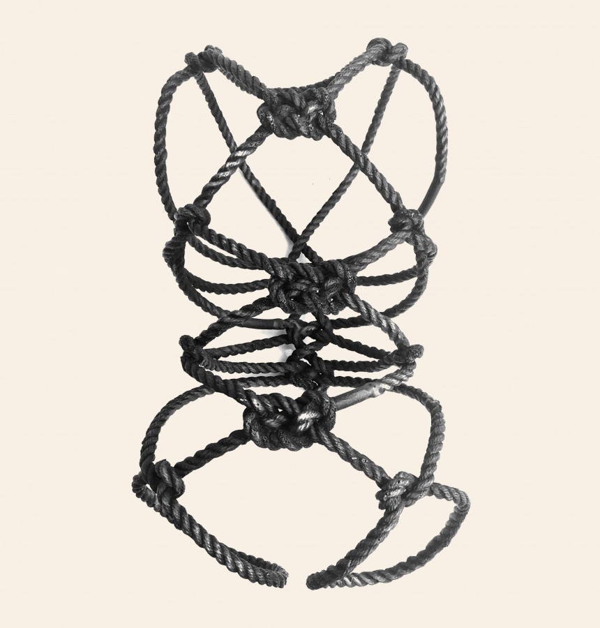 Inspired by his recent performance at the Guggenheim in New York City, Ballet Kink (2019), Fernandes continues to explore the role and status of the body within the contemporary art apparatus through Restrain. This unique series of cast bronze sculptures presents as bound rope, characteristic of the patterns found within Shibari bondage, a form of BDSM that skillfully utilizes ropes, knots, braids, and harnesses to bind and adorn the body, creating patterns that contrast and complement the natural form. The sculptures are suspended within custom-built armatures designed to emphasize the position each bind would have had on the absent body, confronting viewers with a truly still evocation of the body’s removal, creating monuments to the absences.