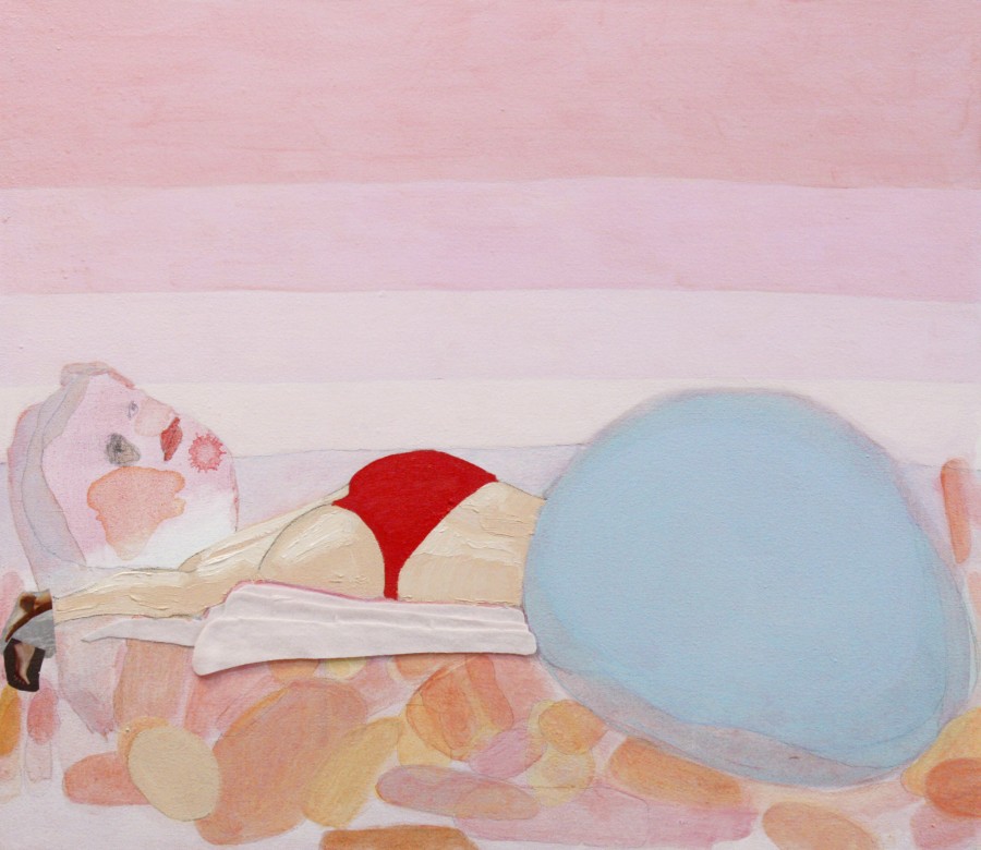 “Desire” as in he gets turned on seeing a woman with nice curves wearing not so very many clothes. Exposed skin. Not “desire” as in the longing for a really good glass of wine, or wishing to be engulfed by sunshine in a garden while reading literature, or wanting to belong to a community. We use “desire” in the academic sense to subtly, politely refer to lust. “Desire” as a shutting down of all the things we can passionately long for, in favor of the lust of a desirable body. His paintings are not concisely about desire, but about all the hemming and hawing we go through before we just own up to wanting what we are not supposed to. The paint works that way too. Sometimes a wet sheen, a glaze, a thin bit of color that works like atmospheric perspective because the shapes are soft and thin, and the edges blend. The relationship to that soft edged is somehow distant.