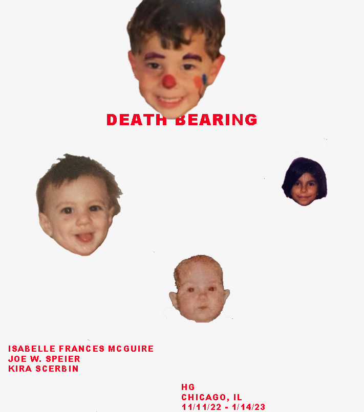 HG is pleased to present ‘Death Besring,’ an exhibition of new work from Chicago based artists Isabelle Frances McGuire and Kira Scerbin as well as NY based artist Joe W, Speier.