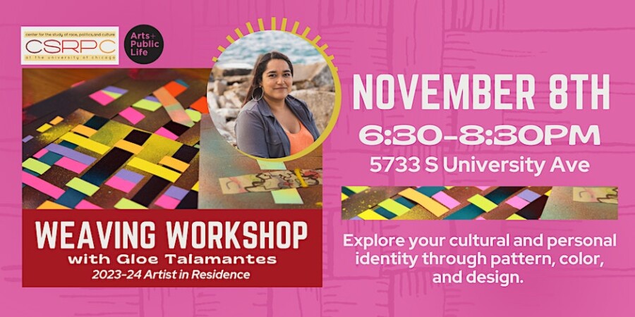 Tags: and Culture, Arts + Public Life, Center for the Study of Race, Chicago, Gloe Talamantes, Politics, Washington Park, Weaving Workshop with Gloe Talamantes