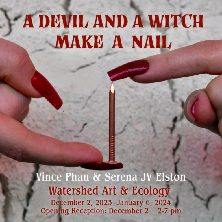 “A Witch and A Devil Make a Nail,” is a dramatic duo exhibition featuring the works of artists Vince Phan and Serena JV Elston. The title of the show draws inspiration from a 1700s woodcut, a relic that encapsulates the mystical collaboration between human and supernatural forces, crafting objects that defy the natural course of growth.