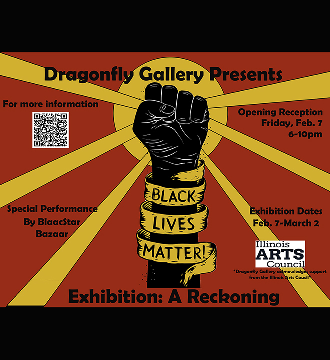 Dragonfly Gallery & Creative Spaces proudly presents the 4th Annual Black Lives Matter Exhibition: A Reckoning. The exhibition will open on Friday, February 7th from 6 to 9 pm, showcasing the work of 24 remarkable artists. This year’s theme explores powerful concepts such as Beauty as resistance, memory, personification, and amplification.