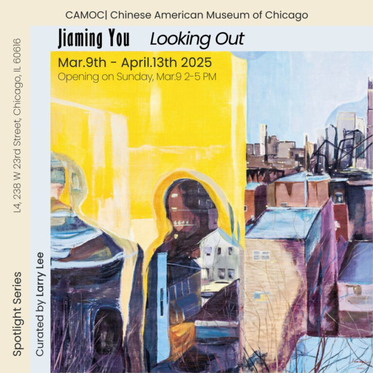 The Chinese American Museum of Chicago’s (CAMOC) newest Spotlight Series exhibition will feature artist Jiaming You in Looking Out. The artist who is obsessed with the action of looking, challenges the audience to see her subjects as autonomous beings doing the looking rather than passive subjects being looked at. You’s thought-provoking exhibition includes some striking, large-sized paintings and installations and will run from March 9th to April 13th, 2025.