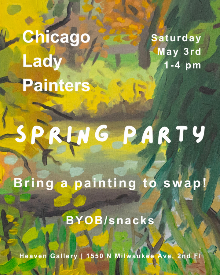Join us Saturday, May 3rd at Heaven Gallery for the summer Lady Painter Party, from 1pm to 4pm. Bring a painting for the painting swap and a snack or booze if you like (both are optional). Images of everyone’s work will be projected on the wall.