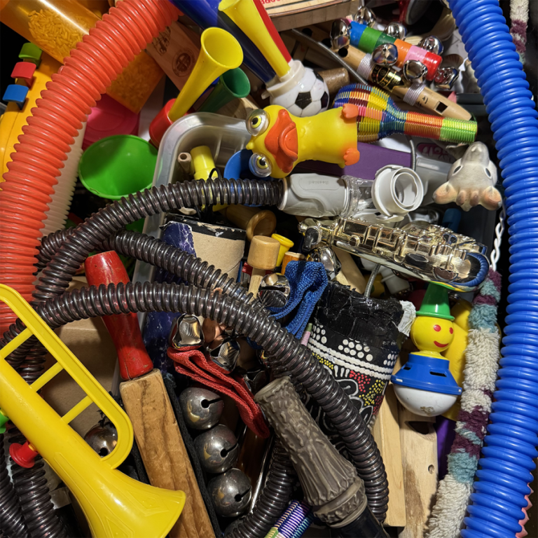 For this afternoon’s concert, cellist and composer Lia Kohl becomes the first to compose a piece for Mars Williams’ collection of musical toys – a regular part of his broad performance arsenal. Mars always dubbed this his Toy Story. As part of the process of archiving Mars’ extensive collection of recordings, Experimental Sound Studio has also recorded and photographed each of these toys to make them available online for anyone around the world to explore and work with!