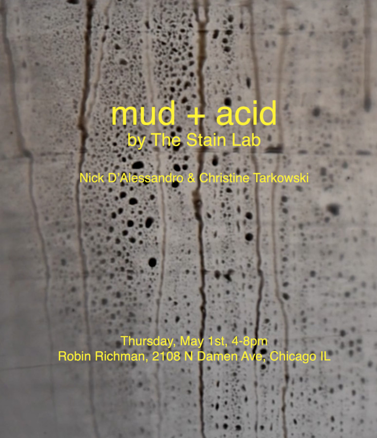 Artists Nick D’Alessandro and Christine Tarkowski launch their co-lab The Stain Lab with a premier of their inaugural collection “mud + acid”.
