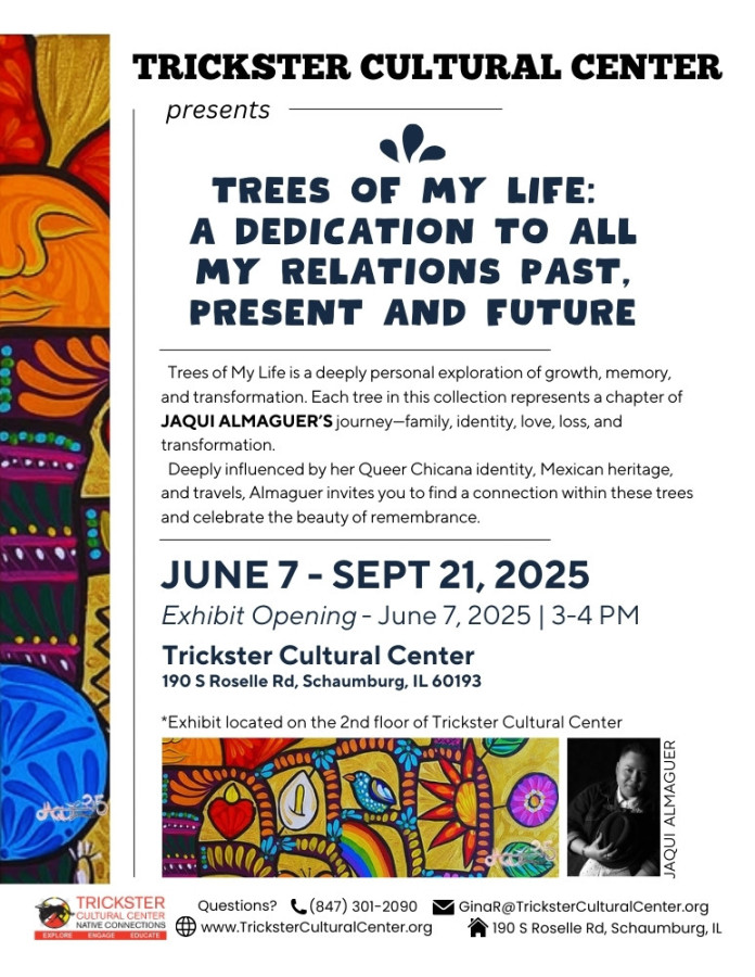 Tags: Evanston, Jaqui Almaguer, JAQUI ALMAGUER: Trees of My Life: A Dedication to All My Relations Past, Present and Future, Trickster Cultural Center