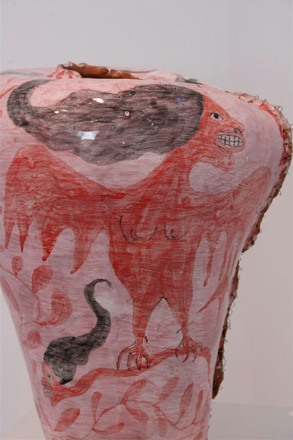 Stitched is a personal exploration of transformation in the wake of heartbreak. Drawing from journal entries, allegorical narratives, and archetypal imagery, the artist charts a path through the descent into grief and self-confrontation, the “Dark Night of the Soul.” Vulnerability becomes both armor and offering, while intuition cuts through illusion like a blade. Through stitched ceramics fragments, this exhibition embodies storytelling, symbolism, and raw emotional truth. This body of work functions as both shadow work and an open diary. It is an invitation to witness a process of unraveling and reassembly.