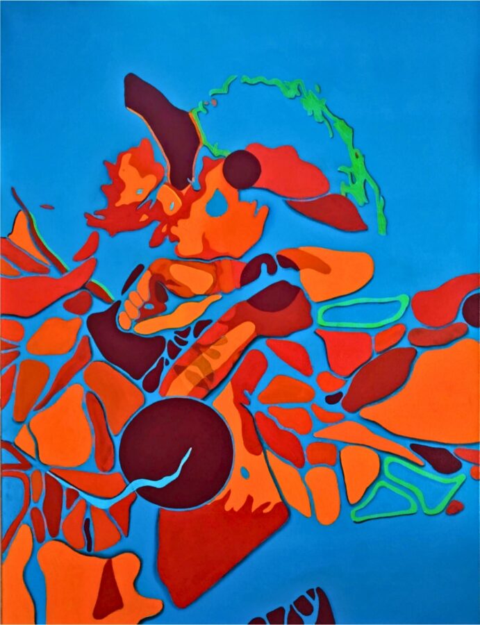 “Biomythography” is a term coined by Audre Lord defined as “combining elements of history, biography and myth” within literature. My exploration of this idea is a continuation of the ongoing series of paintings, collages and stories in my Mythical Memory series. This body of work combines Afro-surrealism, abstraction, and elements of pop art aesthetics. This overlap and intersection of genres is used to create a dialogue around the abstract qualities of time and memory, the liminality of the dream space and the way in which personal narratives can create a mythology. Time and memory are components of history. The mythology enters as the realm where the dream space and memory coincide. Love is the enduring force that weaves it all together.